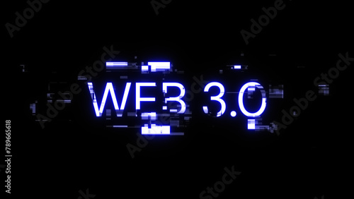 3D rendering WEB 3.0 text with screen effects of technological glitches