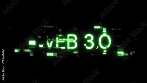 3D rendering WEB 3.0 text with screen effects of technological glitches