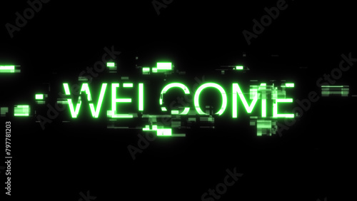 3D rendering welcome text with screen effects of technological glitches