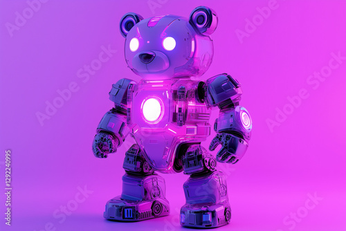 3D robot NFT bear character with mechanical enhancements and glowing body isolated