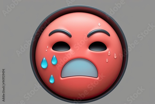 3D Sad Emoji with Sweat Drop and Blushing Face Icon