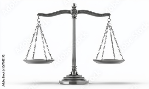 3D scales of justice with balanced weights, representing fairness and equality, iconic legal symbol