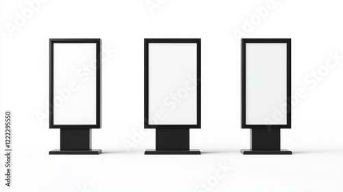 3D set of blank advertising stands isolated on white background. Vector realistic illustration of trade show booth equipment, banner mockup for product presentation, pop up poster front and side view