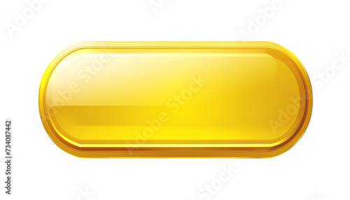 3d shiny yellow sign illustration. Gold rectangle button with frame. Button concept isolated on transparent background PNG