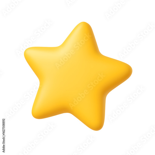 3D shiny yellow star icon, soft rounded shape with smooth gradient, isolated on transparent background