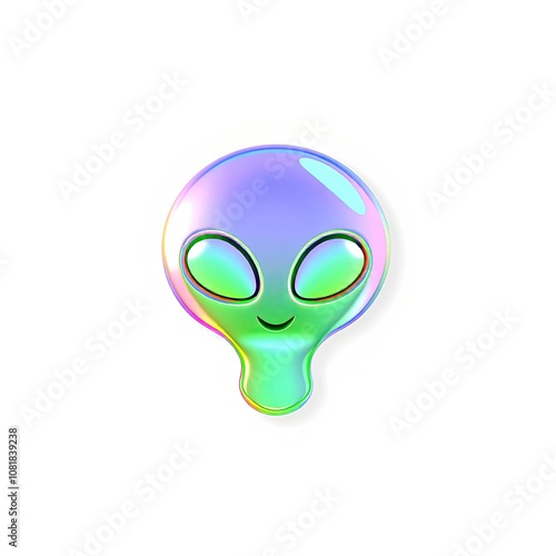 3D Stylized Extraterrestrial Graphic with Iridescent Glitch Effect on White Background