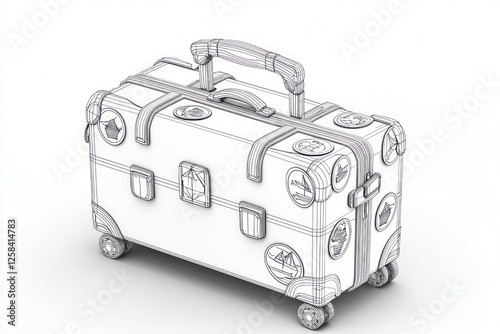 3D suitcase glyph icon, decorated with stickers, travel-themed, white background.