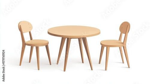 3D table and chairs isolated on white background. Vector realistic illustration of plastic or metal furniture mockup for trade fair booth, restaurant, home kitchen or dining room, clean tabletop