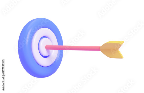 3d target, success arrow with cartoon plastic style icon on transparent background.