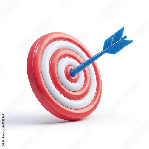 3D target with arrow, red and white rings, isolated on white