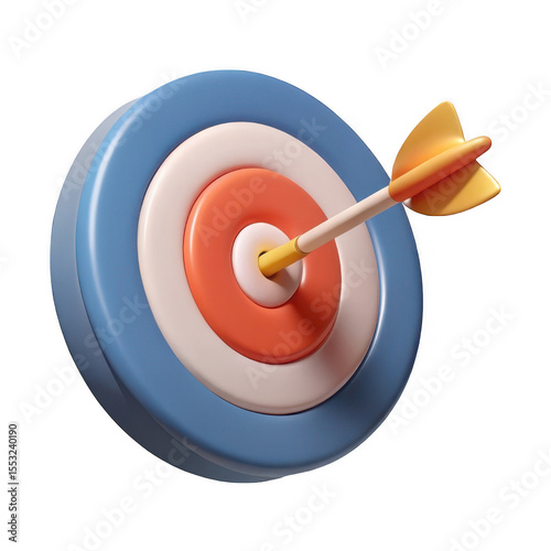 3D Target with arrow hitting bullseye on transparent background