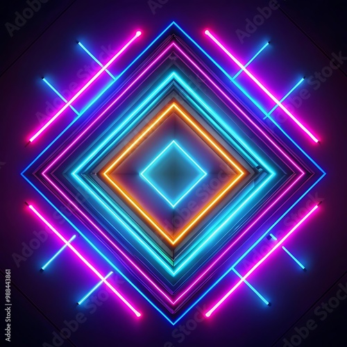 3d technology abstract neon light background, empty space scene, spotlight, dark night, virtual reality, cyber futuristic sci-fi background, street floor studio for mock up. colored geometric. Ai Gen