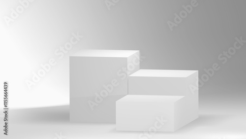 3D three white pedestal layer product stand podium display