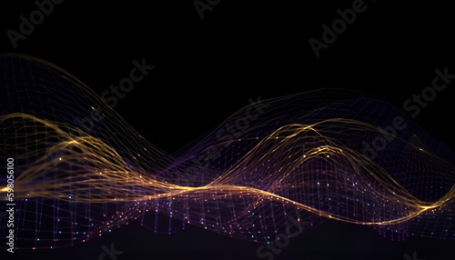 3D Vector wave lines pattern smooth curve flowing dynamic orange gradient light isolated on black background for concept technology, digital, communication,