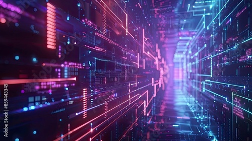 3D visualization of a secure digital environment with multiple layers of encryption