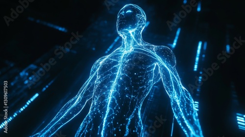 3d visualization of human nervous system in high-tech medical imaging lab neon blue analysis for neurology