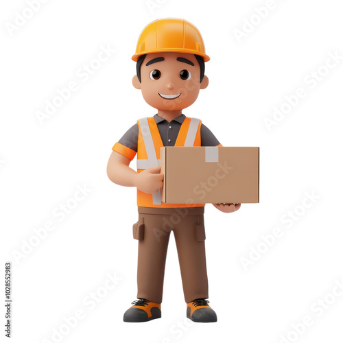 3D Warehouse Worker Character in Action Transparent Background