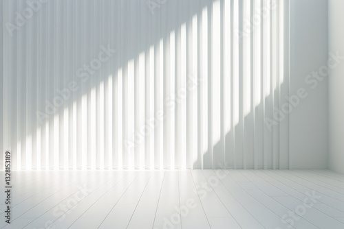 3D white empty room with a floor and walls. A minimalist interior design of a modern home. The sun shines through the window onto the white walls.
