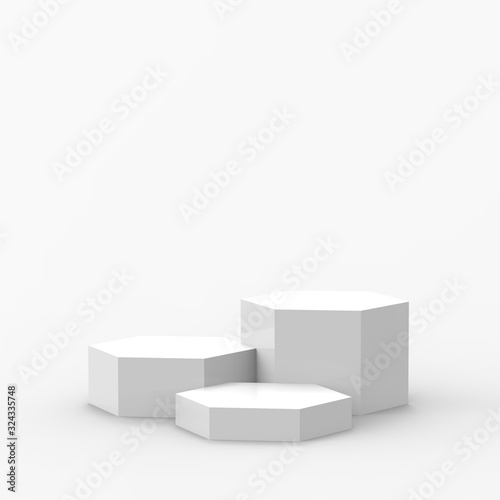 3d white gray hexagon podium minimal studio background. Abstract 3d geometric shape object illustration render. Display for cosmetics and beauty fashion product.
