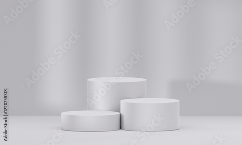 3D white podium with light and shadow. Abstract geometric composition in minimalist design. 3D studio display showroom product pedestal
