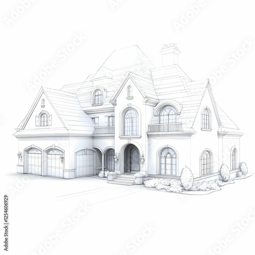 3D Wireframe Model of Luxury Home Design