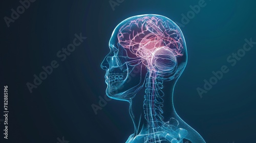 3D x-ray illustration of human brain from side view. The brain in glow color. Medical reference picture