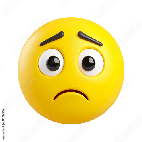 3D yellow confused face emoji icon isolated on transparent background. PNG