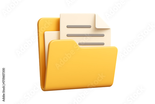 3D Yellow Folder with Documents Isolated on a Transparent Background