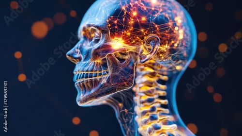 3D-rendered human skeleton with detailed bone structure, medical concept.