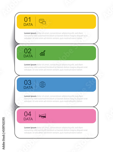 4 data infographics tab thin line index template. Vector illustration abstract square infographic background.