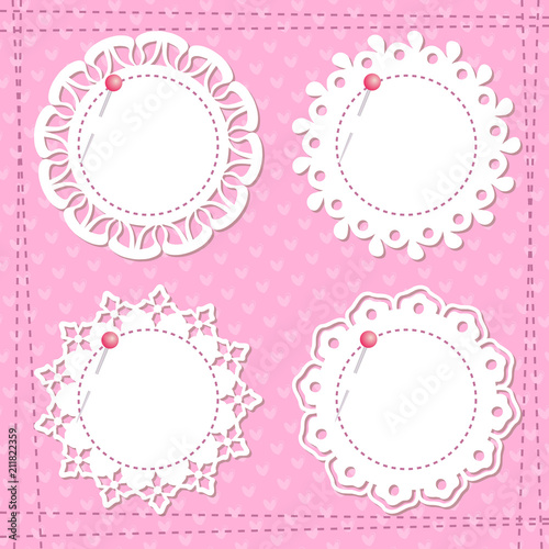 4 lacy frames on the pink background. The seamless pattern and the brushes are included in the palettes