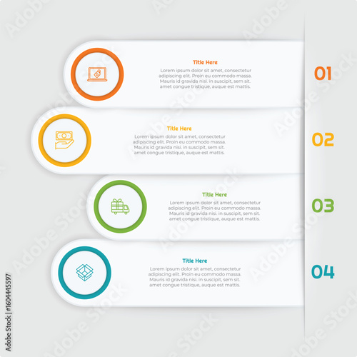 4 Steps Flat Square Infographic Element. Modern and clean design for presentations, reports, and web