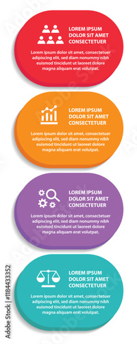 4 steps infographic template with 4 options. Flowchart that can be used for business report, data visualization and presentation. Timeline infographic elements vector illustration.