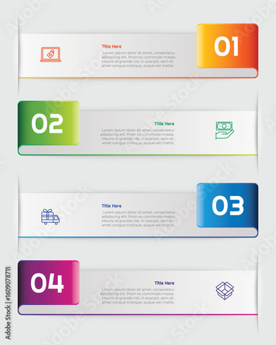 4 Steps or Options Gradient Infographic Element. Modern and clean design for presentations, reports, and web