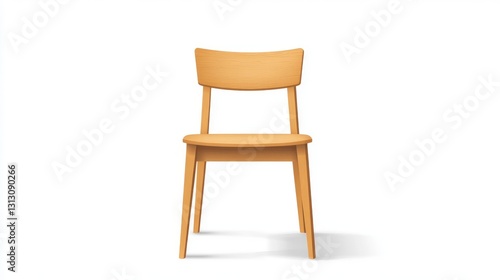 42.A minimalistic wooden chair vector illustration, showcasing a contemporary style with a natural wood finish, gently tapered legs, and a sleek silhouette on a plain white backdrop.