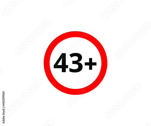43+ restriction flat sign isolated on white background. 43 plus Age limit symbols