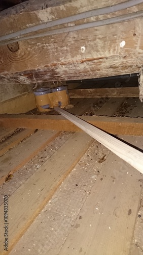 470)A japanese yellow hornet's nest in the attic on the first floor that had been attacked by a northern giant hornet during the day(Photo taken at 21:46 on september 14, 2015)