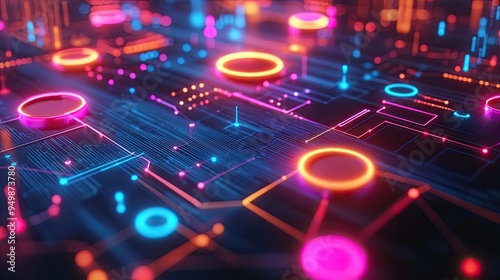 48. Workflow analysis, digital flowcharts and process metrics, 3D illustration.