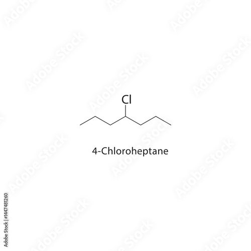4-Chloroheptane skeletal structure. Chlorinated Alkane compound schematic illustration. Simple diagram, chemical formula.