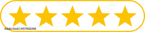 5 star icon rank sign. Customers rating for product or service. Yellow five star review sign for app, website, ui design element illustration.