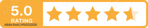 5 star icon. symbol of customers rating for product or service. yellow five star sign with text for app, website, ui design element. transparent png and vector illustration