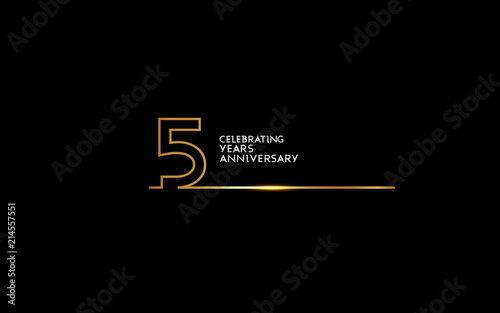 5 Years Anniversary logotype with golden colored font numbers made of one connected line, isolated on black background for company celebration event, birthday
