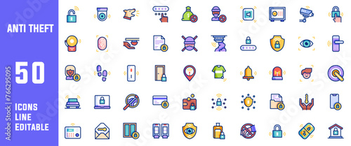 50 Anti Theft Icons Set Pack Line Editable Vector Illustration