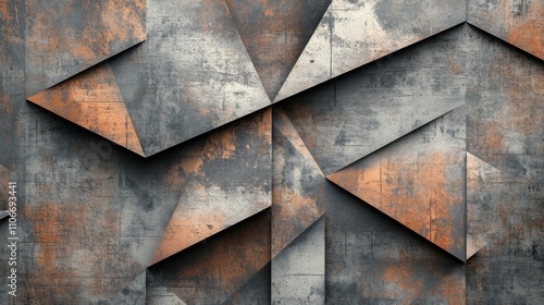 51.A dynamic 3D wallpaper design with an abstract grunge pattern, featuring distressed textures and intricate geometric shapes. The background combines layers of faded colors and rough textures,