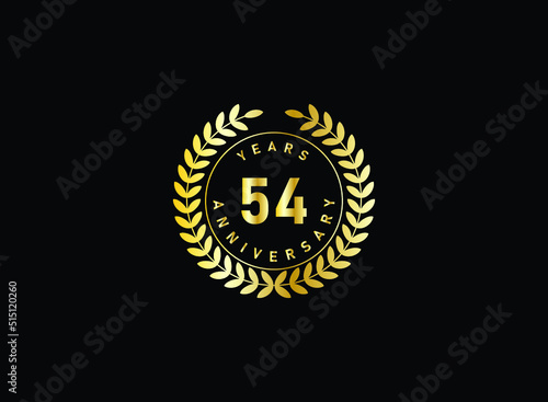 54th anniversary celebration with gold glitter color and white background. Vector design for celebrations, invitation cards and greeting cards.
