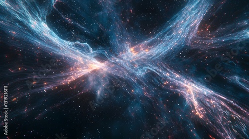 55. A vast interstellar field with glowing cosmic trails, embodying the infinite possibilities of inception