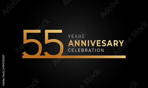 55 Year Anniversary Celebration Logotype with Single Line Golden and Silver Color for Celebration Event, Wedding, Greeting card, and Invitation Isolated on Black Background