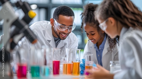 58. Students using science lab equipment to perform experiments with a teacher is supervision