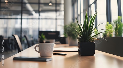 6. "A cup of coffee, a notebook, and a pen arranged on a desk, all set against a white background.