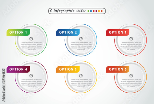 6, Infographic design template. Timeline concept with 6 steps. Can be used for workflow layout, Presentation, diagram, banner, Vector illustration with 6 Circle options